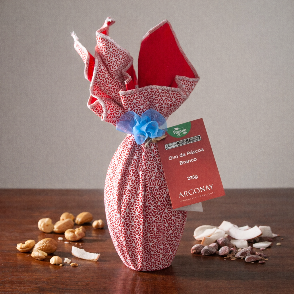 Elaborado com manteiga de cacau, castanha de caju e leite de coco, este ovo branco vegano oferece cremosidade intensa e sabor delicado, sem utilizar leite ou qualquer ingrediente de origem animal.